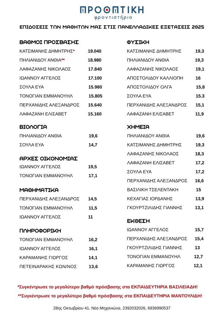Το φροντιστήριο θα παραμείνει κλειστό για τις καλοκαιρινές (απαραίτητες!) διακοπές. Επιστρέφουμε στις 7 Αυγούστου. Τα τηλέφωνα επικοινωνίας όμως θα παραμείνουν ενεργά. Καλές διακοπές!